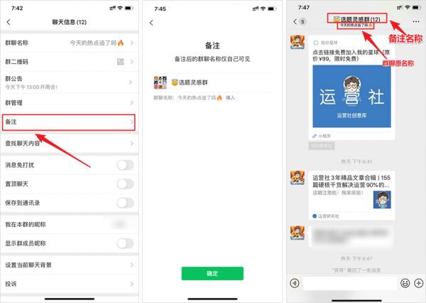 2)群聊名称可以改备注,方便我们区分不同类型的社群;