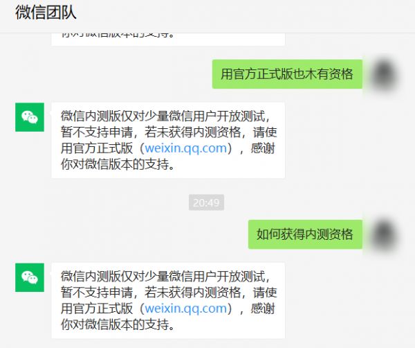 于是我就去问了微信团队,他们表示现在不能申请,只能乖乖听安排。