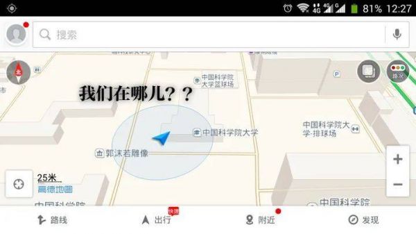 大家或许会想,我们的科学技术发展到了今天,难道连两个人在一个商场里面还找不着吗?大家每个人都会有一个手机,请大家拿出你的手机,打开看一看定位,看看我们坐在这个大礼堂里面,能否找到我们的位置。很显然你找不着,你所在的位置是一个大的圆圈,这个圆圈的半径可能是50米,甚至是数百米。卫星导航因为在天上,离地面太远,它的信号到了地面已经很弱,特别有建筑物遮挡的时候,这个信号就变得更弱了。手机收不到这种信号,它也就不能定位导航。当然你在窗边偶尔能收着,定位误差至少得几十米以外。