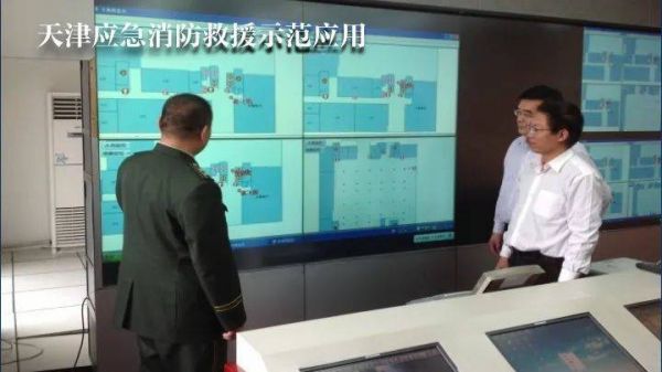 我们在天津,在全国其他40多个城市,开展了羲和系统的应用服务。在天津用于消防,大屏幕上展示的是每一个被救援现场的设备地图,在这个地图上可以反映消防栓,消防官兵,包括被救人员所在位置,一旦清楚这些位置,你可以迅速地到达现场把人救出来。
