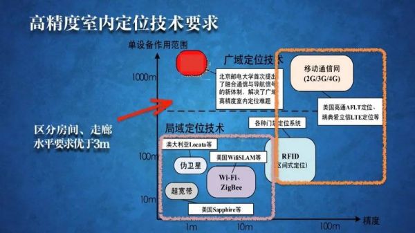 第二,卫星到你手机端的定位解算是要算出直线距离,可是我们在这屋里面是看不见任何基站的。基站到你手机信号的传播的时间是把所有的传播路径都加在一起,这个路径是远超过于我们的直线距离的,在城市平均误差达500米,你必须得晓得还有多径等等。在晓得这个误差以后,你才有可能获得你的高精度位置信息。那么其他的通信技术又能怎么样呢?我们看看,大家熟悉的wifi 蓝牙,苹果手机用wifi蓝牙定位。它可以在局部范围内定得很精确,误差是10%到30%,100米的范围,可以产生30米的误差。而卫星是千分之一到万分之一的误差。我们在基站里面,它是几十米误差,基站能否做到1米,这是全世界的一个难点,是我们大家共同要攻克的一个难题。