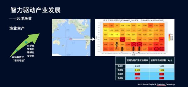 当我们去看农业生产、渔业生产这种传统的延续了千年的场景时,今天可以不再只依靠夜观天象,或者看海洋流向这种传统方式,我们还可以用实时的海洋卫星数据,即时算出这样一个指标。所以在某种程度上可以说,今天的每一条鱼都是靠数据捕捞上来的。传统的渔业生产经过了智能升级之后,变得与众不同了。