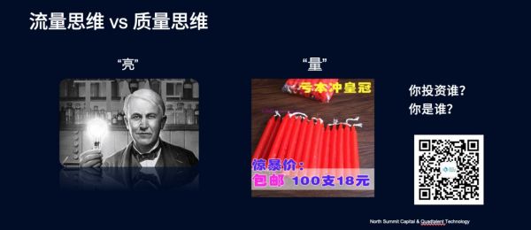 在图十三中,我特意的找了右边这张图,一个卖家精心设计的卖蜡烛“亏本冲皇冠,包邮惊爆价”。用流量的思维来看,它的产品是最容易放量的,既有流量又有To C互联网的基因,还有面对着消费者的刚性需求,所以有千万个理由可以投资他,这是消费互联网时代的典型业务。