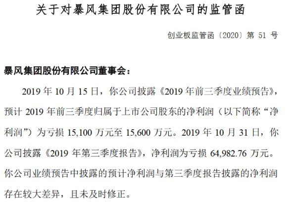 (原标题:亏损与预告差异过大,暴风集团监管函关注函通报批评不断)