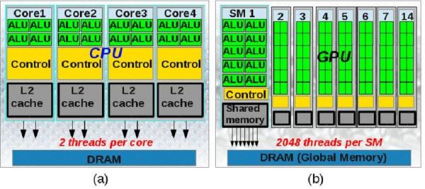 CPU与GPU的架构对比,图片来自网络