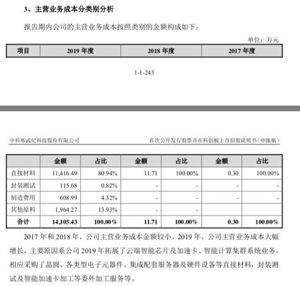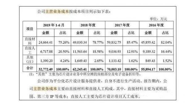 “混不吝”发现,即使 2019 年系统集成收入占据了全部收入的一半以上,寒武纪的主营业务成本中并没列出“直接人工”(或人力成本)。而她查询与寒武纪主营业务类似的芯原微电子的审计报告(由德勤出具)发现,芯原微电子在主营业务成本中,明确列示了“直接人工”数据。