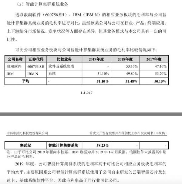 “人力成本的缺失,最终会使相应业务毛利率虚增”,对比 IBM 和浪潮已经精细化管理运作的相似业务,寒武纪系统集成业务毛利率高了 5-11 个百分点左右,“混不吝”觉得这似乎有些不太合理。