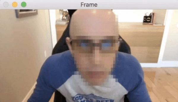 $ python blur_face_video.py --face face_detector --method pixelated[INFO] loading face detector model...[INFO] starting video stream...