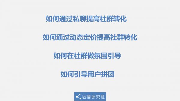 这个选题的正确打开方式应该是拆解成 4 条视频,分别是:如何通过私聊提高社群转化,如何在社群做氛围引导,如何通过动态定价提高社群转化和如何引导用户拼团。