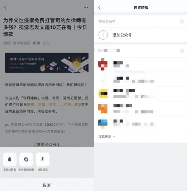 不过,“订阅号助手”App也不是一无是处,比如“转载设置”功能可以在手机端直接设置白名单,免去了收工后还要为了开白再次打开电脑的不方便。