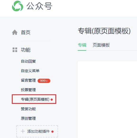 从功能介绍中可以发现,“专辑”是“页面模板”功能的升级,原”页面模板“功能仍然保留。相比于“页面模板”,“专辑”功能有其特有的几个细节: