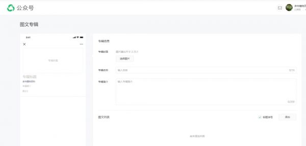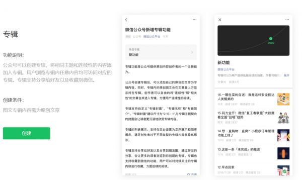 周二(4月14日),微信公众号后台增添新模块“专辑”功能,当前处在灰度测试阶段,目前仅开通了原创声明的公众号可以申请开通。