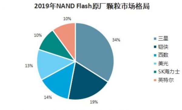 在 NAND Flash 市场中,三星、东芝、镁光、SK 海力士、西部数据、英特尔这六家企业长期垄断着全球 99% 以上的份额。