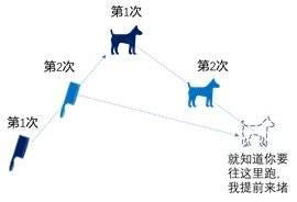 (3)如果它跑步是有规律的(先验信息,Priori Information,也就是已知的信息),例如匀速直线地朝狗窝跑,你还可以直接到它的必经之路去堵它(预测,Prediction)。
