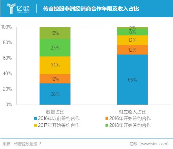 深耕非洲十二年后,传音与很多非洲本地经销商形成了长期稳定的合作,合作年限更长的经销商贡献了更多销售收入,证明了其经销模式的可行性和稳定性。