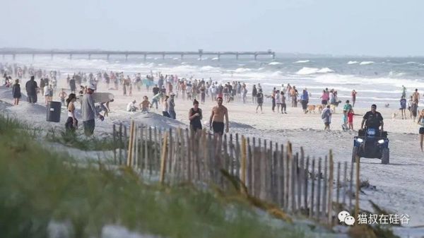 第四,居家令也是自觉为主,而且各州实施时间都不一致,疫情尚未退却,保守州甚至已经开始准备部分解封,上图是昨天的佛罗里达海滩,这样的场景指望控制疫情?