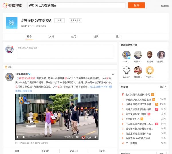 二维码上没有任何解释,整个活动也没有预热,这样“突如其来”的营销,却上了微博热搜,“B站要卖楼”这样的误会,也在社交媒体上引发了不少讨论,得到了一千多万的阅读量。