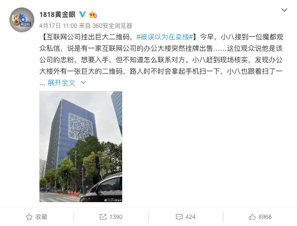 所以,B站占据了物理空间,但也拥有着自己的文化位置,当B站大楼上挂上二维码时,它的符号意义便凸显出来,具备了社交传播价值。