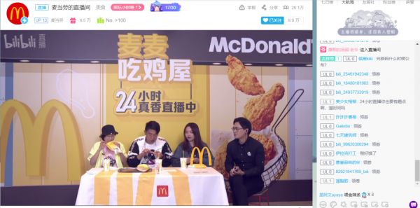 快餐领域,4月15日麦当劳为了新品发布,在B站进行了一场24小时连续吃播。更早的肯德基,在去年圣诞节就已经在B站做了一场活动。