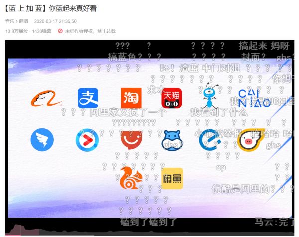 音乐翻唱视频,一般翻唱的都是在B站有梗热门的歌曲,主要创作形式是填词,前段时间的《处处吻》、《达拉蹦吧》、《你笑起来真好看》等歌曲都没逃过阿里的各大官方账号,不同业务的官方账号通过这些翻唱视频进行高频互动,达到互相导流涨粉的效果。
