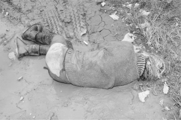 死亡现场照片,外套在距尸体2米处