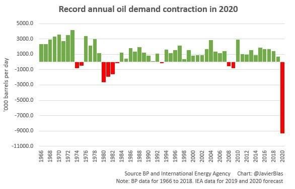 首先是及其疲弱的原油需求。最新研究数据显示,4月,全球原油需求将收缩约2900万桶/天,2020年全球石油需求将暴跌至创纪录的930万桶/日。两项数据对油价来说都是致命的打击。