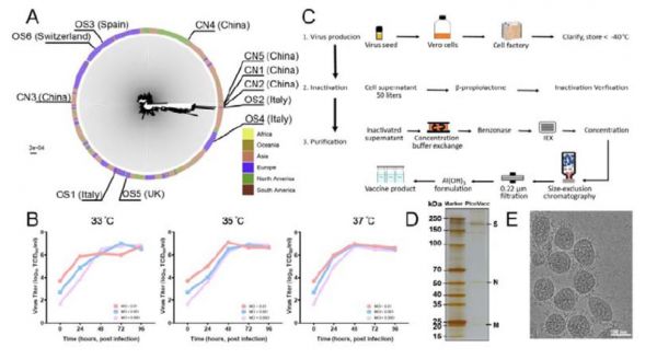 研究者从11名中国、意大利、瑞士、英国、西班牙等新冠肺炎确诊患者的支气管肺泡灌洗液中分离出了新冠病毒毒株,包含新冠病毒毒株的11个样本广泛分布在所有可用基因序列构成的系统发育树上。研究人员选择了其中一个毒株,开发出了纯化灭活的SARS-CoV-2病毒疫苗PiCoVacc。