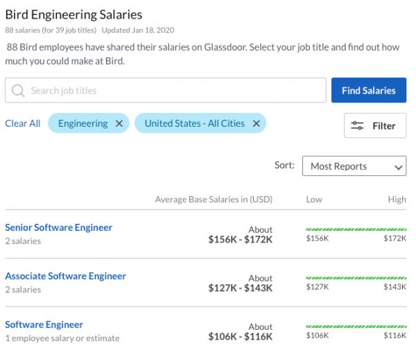 去年,领英将Bird评为美国求职最热门的公司之一。根据Glassdoor数据,一名普通的软件工程师年薪10万美金起步。