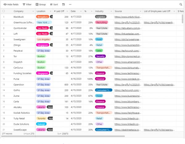 根据Layoffs.fyi的数据,自3月1日起,已经有273个初创公司累计裁员25,873名员工。