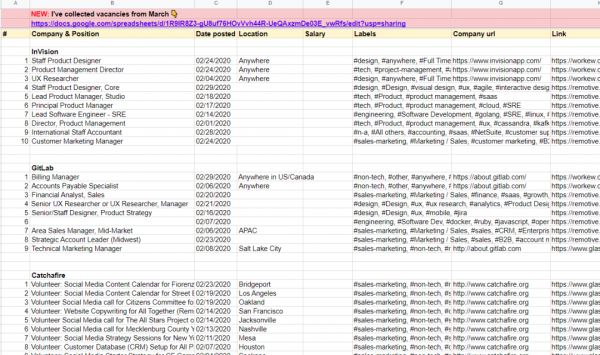 她在Twitter上面发起开源求职表格,表格包括100家企业超过1500份支持远程工作的岗位,为失业的人群提供信息支持。