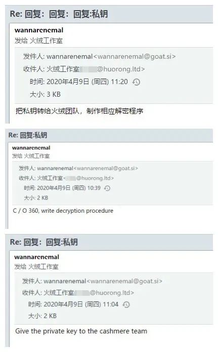 事情是这个样子的,本来,9日上午一位火绒用户以解密为由,通过邮件尝试联系WannaRen勒索病毒作者获取密钥。结果作者就主动提供密钥给这位用户,并且还叮嘱他“把私钥转给火绒团队制作解密程序”。