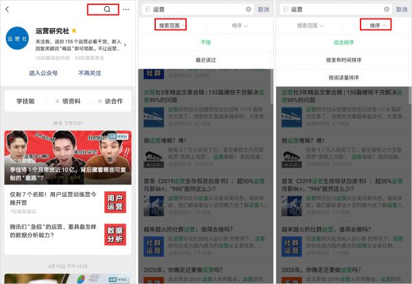 排序:除了综合排序外,新增了按发布时间排序和按阅读量排序。