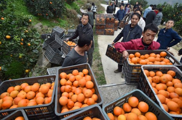 ▲湖北秭归楚王井村,村民刚从树上摘下的新鲜橙子,即将通过拼多多平台送达全国各地消费者手中(图片来源:楚天都市报)
