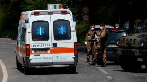 意大利罗马附近,救护车经过一处路障,路障另一边是一家养老院 / 网络
