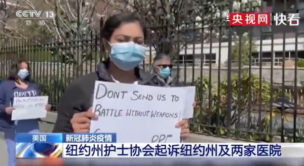 @央视【纽约州近万名护士感染新冠病毒】 20日,纽约州护士协会把纽约州及两家医院告上法庭,称危险工作条件让护士处于高危环境中,该协会称目前,在协会注册的9514名护士感染了新冠病毒,11名护士死亡。