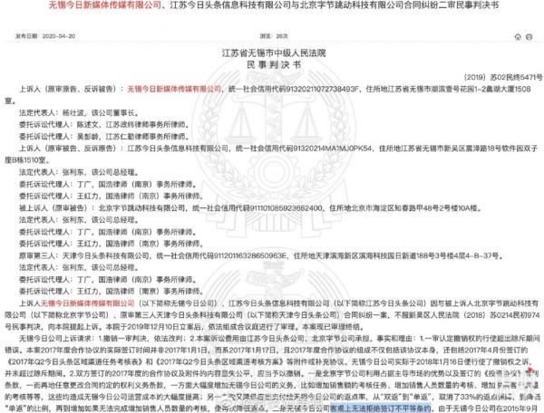 @虎嗅【广告代理商自称与字节跳动签订不平等条约,索赔581万返点完败】广告代理商无锡今日新媒体传媒有限公司自称与字节跳动公司签订不平等条约导致公司亏损严重,向法院起诉要求撤销投资协议,索赔返点差额581万元。