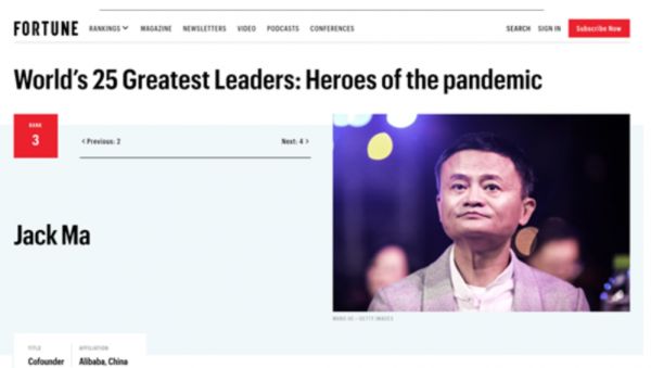 @新浪科技【《财富》发布全球最伟大25名抗疫领袖:马云盖茨入选】 4月21日午间消息,美国《财富》杂志发布了年度全球最伟大的25名抗疫领袖,向抗击疫情的世界英雄致敬。