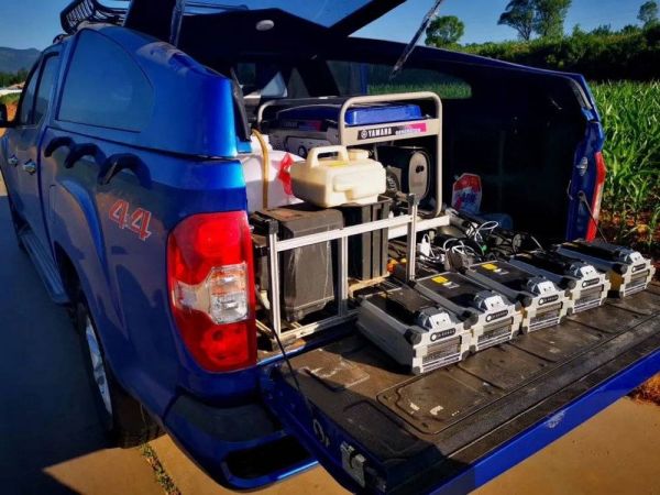 黄鹏的飞防队作业现场,需要随车携带发电机及电池,黄鹏