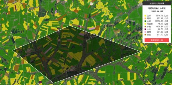 用卫星数据统计农作物面积,右上角数据为框选区域的计算结果|大地量子