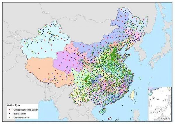 中国国家级地面气象站分布(图片来源:中国气象局)