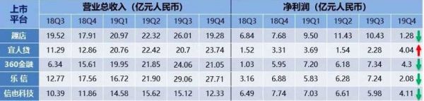 财报显示,除了宜人金科之外,另外四家第四季度的业绩都开始呈现下滑趋势,且有的平台下滑幅度较大。例如,趣店2019年第四季度的总收入为19.32亿元,环比下降25.4%;按照非美国通用会计准则(Non-GAAP)调整后的净利润为1.57亿元,环比下降85.2%。
