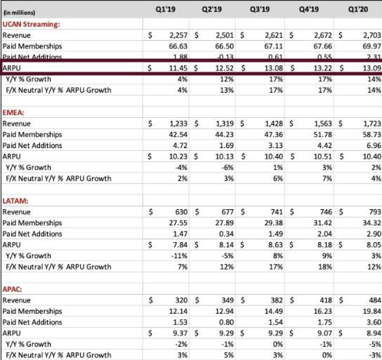 来自于欧洲、中东和非洲流媒体视频服务的营收为17.23亿美元,相比之下去年同期为12.33亿美元;