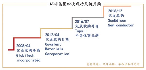 中国台湾的环球晶圆:2008年并购Globitech,拿下德州仪器等大客户;2012年并购Covalent,掌握12英寸技术;2016年并购Topsil,获得8英寸先进区熔技术;同年并购美国最大硅片制造商SEMI,产能扩张、海外市场两手推进。