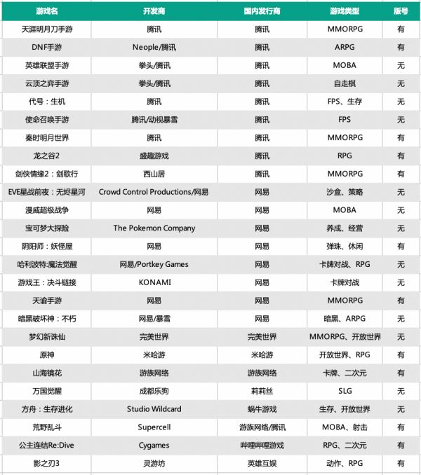 从这份名单中也能看出,这些产品都是手游市场中的佼佼者,就算把它们放在全球市场中,也依然非常“能打”。