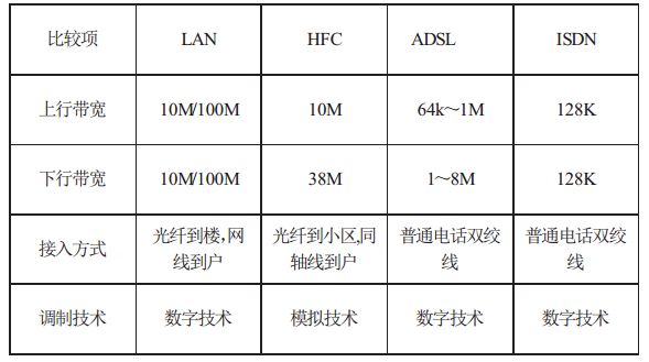 图注:几种带宽技术的比较,来源:邓冠文,《中国互联网宽带技术的历史与发展方向》