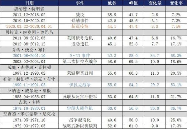 历史上危机过后的总统支持率变化情况,数据来源:RealClearPolitics, 国泰君安证券研究