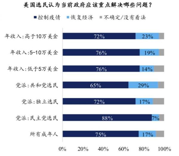 大多数美国人认为控制疫情比重启经济更重要,资料来源:Morning Consult,国泰君安证券研究