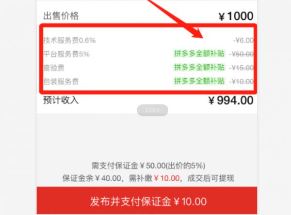 目前拼多多仅收取技术服务费,其他交易成本全额补贴,意味着每成交一双1000元的球鞋,拼多多不仅挣不到平台服务费,还要额外再亏损25元(查验费+包装费)。