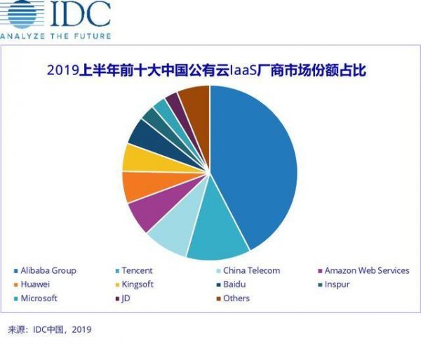 此外,在市场份额上,百度云也表现平平。根据 IDC 2019年上半年数据,中国公有云IaaS市场中,阿里、腾讯、中国电信、AWS、华为位居前五,占据总体75.3%的市场份额,百度云位列第六。