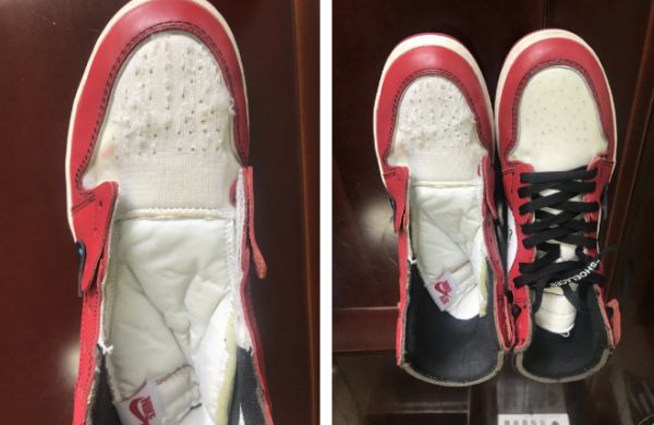据萧山法院微信号消息,去年7月底,小伟在杭州某店铺买到一双名称为AJ1OW的联名芝加哥白黑红限量球鞋,购买价格为3.65万。同年10月2日,他将球鞋送到大刘的擦鞋店进行清洗。三天过后,小伟取鞋时却大吃一惊,两只鞋面均不同程度受损,其中右鞋的鞋面更是“面目全非”,已被大刘自行更换了非原装鞋面。心痛之余,小伟要求大刘按照自己的购买价格进行赔偿。但双方对鞋子的价值认知差异过大,2月24日,小伟将大刘诉至法院。